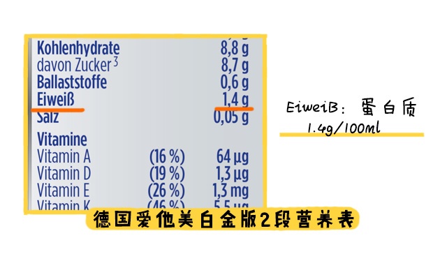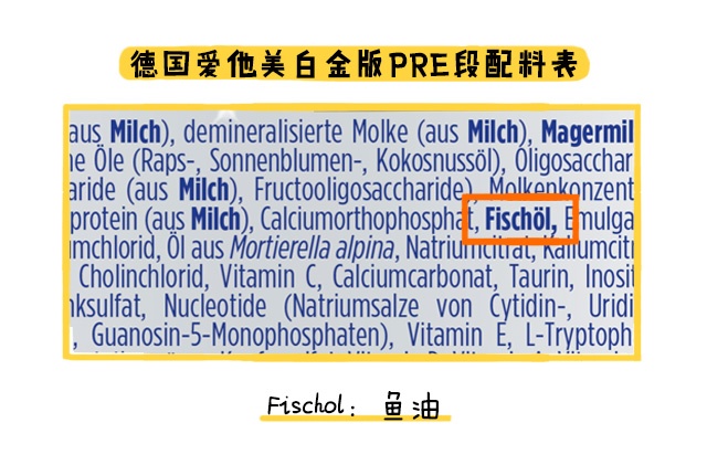這里著重說一說DHA,卓萃3個段數(shù)的DHA添加量都比較令人滿意,是市面奶粉平均水平的2倍左右。德愛白金的話,其實德國奶粉一般不會在奶粉中直接添加DHA,而是添加一些富含DHA的原料,德愛白金添加了“魚油”,魚油正是DHA的來源,因此德國版是含有DHA的,不過就不明確添加量。