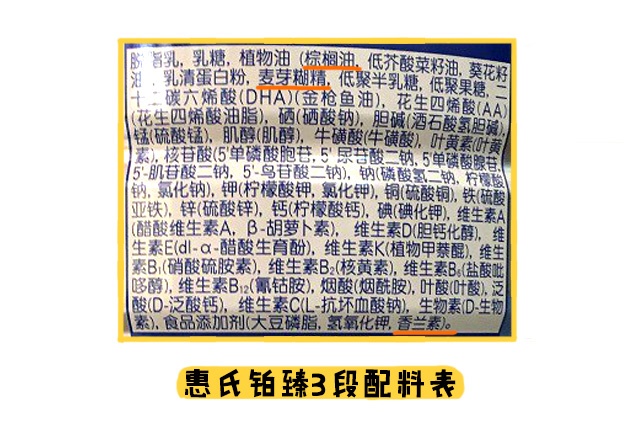 奶源和營養都分析完,最后是原料方面。鉑臻全段數添加了棕櫚油,2段之后加入了香精,3段還使用了麥芽糊精。