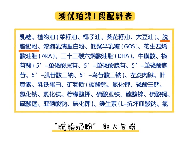 經過我對兩款奶粉的營養成分表及配料表的對比,發現兩者在奶源及營養方面的區別比較大。首先奶源方面,珀淳是在澳優澳大利亞的工廠生產,使用的也是澳大利亞奶源,奶基是大包粉兌水的還原奶,還原奶的加工過程比較繁瑣,奶粉受二次污染的幾率較高,營養素的流失也較多。