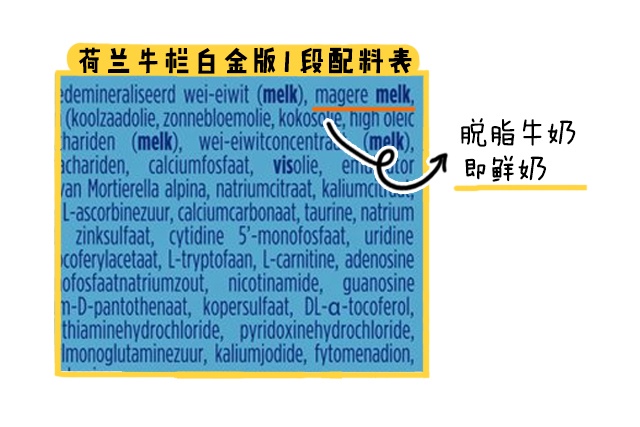還有一點要留意的是,由于歐洲寶寶的飲食習慣與中國寶寶不同,所以奶粉制定的營養標準也不同,很多歐洲奶粉都會有基礎營養含量與國標不符的情況(基礎營養包括碳水化合物、脂肪、蛋白質、維生素、礦物質),荷蘭牛欄白金版也不例外。