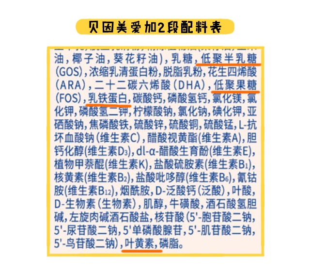 特色強化配方是指商家對外宣傳自家產(chǎn)品特別添加進去的別人沒有的配方。愛諾達各段數(shù)是添加了葉黃素和益生元組合(低聚半乳糖+低聚果糖)。
