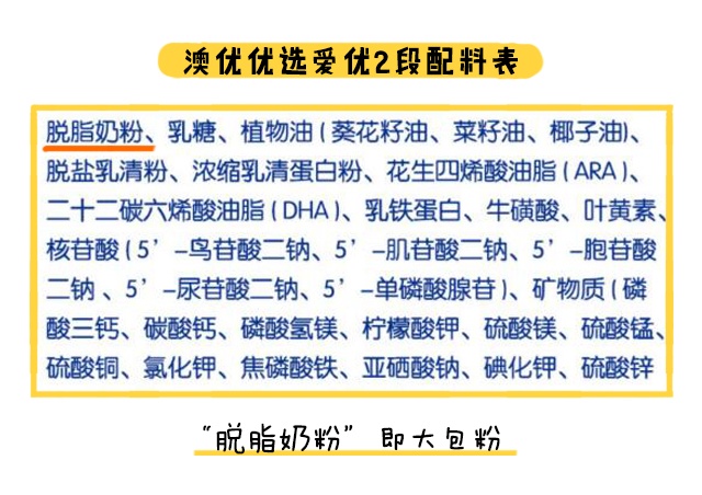 說完營養方面,接著我們看看奶源。優選愛優采用中國奶源,奶基是大包粉兌水的還原奶,還原奶的加工工序比較繁瑣,奶粉受到二次污染的幾率較高,而且營養素的流失也比較多。