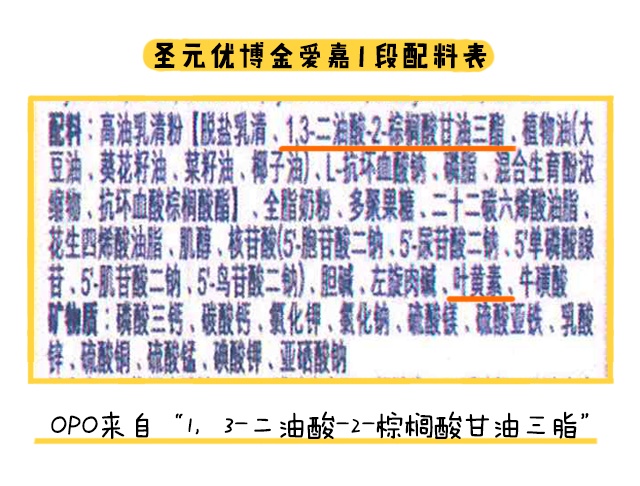 金愛嘉最大的賣點(diǎn)是OPO,OPO是一種植物油油脂,它能有效減少鈣皂的生成,優(yōu)化寶寶對(duì)鈣的吸收,軟化便便,降低便秘幾率。此外還含有對(duì)寶寶視力發(fā)育有幫助的葉黃素,不過(guò)很多日常食物中都含有葉黃素,寶寶很輕易就可以從輔食中獲取,因此沒太大優(yōu)勢(shì)。