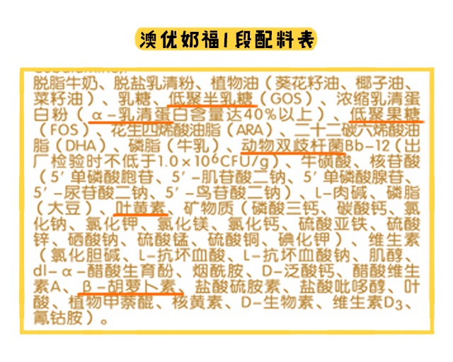 至于特色強(qiáng)化配方,它指的是一些商家宣傳自家奶粉特別添加進(jìn)去的,區(qū)別于其他品牌的營養(yǎng)素。奶福是添加了益生元組合、益生菌、葉黃素、β-胡蘿卜素和a-乳清蛋白。