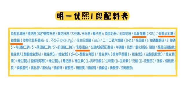 說完常規(guī)強化配方,接著說說特色強化配方,它指的是商家宣傳自家產(chǎn)品特別添加進去的,區(qū)別于其他品牌的配方。優(yōu)煕各段數(shù)是添加了乳鐵蛋白、酪蛋白磷酸肽、益生菌、益生元組合和α-乳白蛋白(即α-乳清蛋白)。
