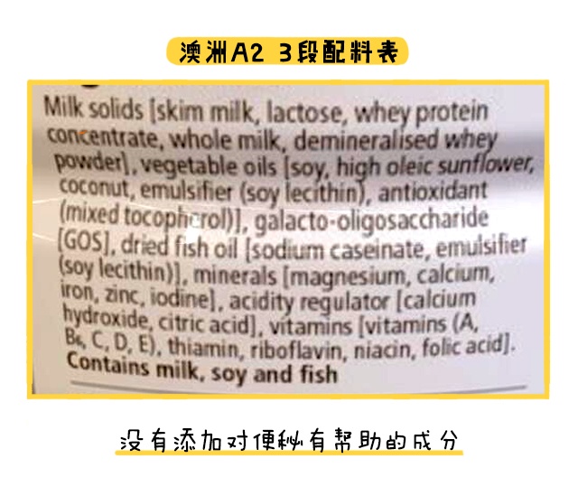 至于A2的話,它各個(gè)段數(shù)都沒有添加對(duì)便秘有改善意義的配方。