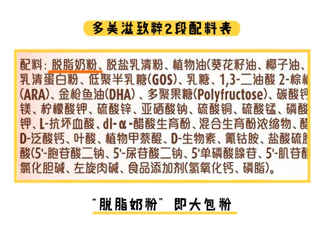 而多美滋致粹全段數均是完全使用還原奶作為奶基,新鮮度和營養保留度都不怎么理想。
