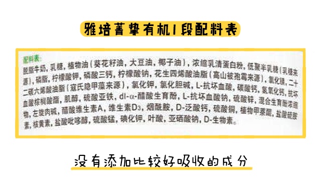 所以很明顯,菁摯純凈在脂肪方面的吸收比菁摯有機更加有優勢,推薦度更高、但是在碳水化合物及蛋白質方面,菁摯純凈并沒有添加比較利于寶寶吸收的成分,而且在原料方面,菁摯純凈從2段開始就加入容易導致寶寶偏食的香精和蔗糖。