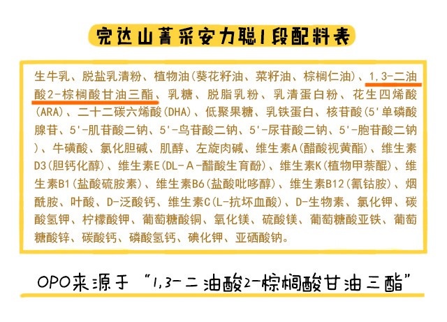 那么我們看看這兩款奶粉的表現怎么樣,菁采安力聰各個段數都添加有OPO,OPO是一種植物油油脂,經過生物科技的改變,使得它大部分脂肪酸的結構都是與母乳一樣呈現OPO結構,可以有效減低鈣皂的生成,促進寶寶對鈣和脂肪酸的吸收。