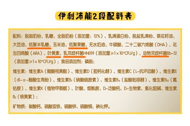 說完常規強化配方,接著說說特色強化配方,它指的是一些宣傳自家奶粉特別添加進去的營養素。沛能各段數是添加了葉黃素、益生菌(乳雙歧桿菌、動物雙歧桿菌)和益生元組合(低聚半乳糖+低聚果糖)。