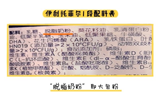 說完托菲爾的優勢,接著說說它的不足,托菲爾各段數是采用新西蘭奶源,奶基是大包粉兌水而成的還原奶,還原奶經過二次加工,奶粉受到二次污染的幾率較高,營養素的流失也比較多。