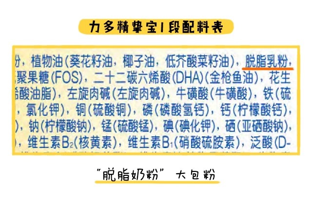 整體來說,力多精的營養配方比較一般,此外,奶源和原料方面也比較令人失望。首先奶源方面,力多精各段數是使用大包粉兌水的還原奶作為奶基生產。