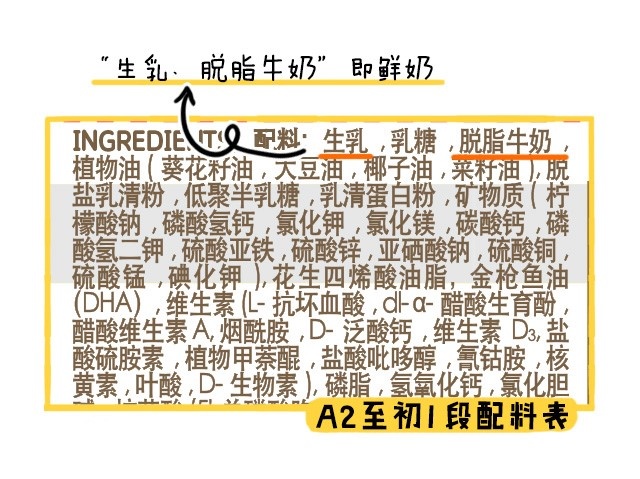 不過要注意一下,A2至初奶基使用了“生乳”,前面也說了,牛乳脂肪不太利于初生寶寶的吸收。