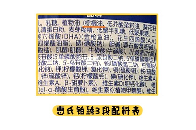 大家要注意的是,鉑臻全段數含有棕櫚油,棕櫚油的棕櫚酸會與鈣結合形成鈣皂,影響寶寶對鈣的吸收,還會使寶寶的大便變硬,增加便秘的幾率。但好在鉑臻所添加的益生元組合能一定程度上降低棕櫚油的影響。