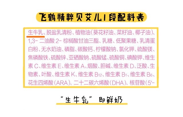 對比完營養,接著對比一下奶源這塊。飛鶴在黑龍江有屬于自己的牧場,這兩款奶粉采用的是自家牧場的奶源。不同的是精粹貝艾兒全部段數都是使用鮮奶制作,而星飛帆只有1段是完全使用鮮奶,2段之后就摻入了大包粉兌水的還原奶。