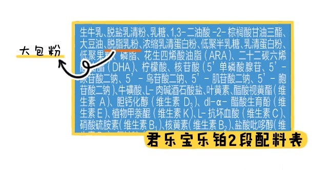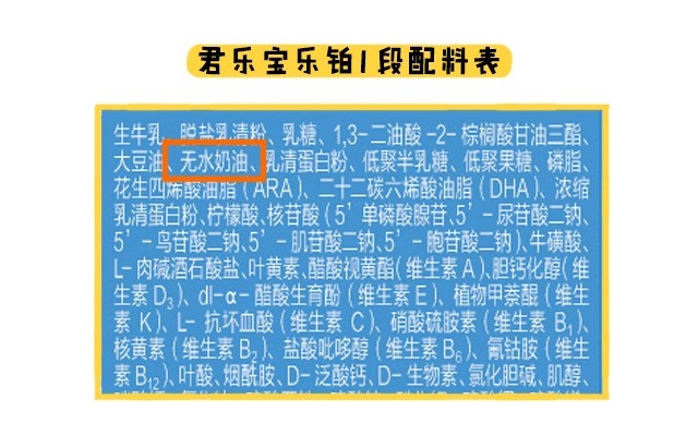 樂鉑各個段數都含有污水奶油,它能豐富奶粉的脂肪酸種類,但無水奶油來源于牛乳,對初生寶寶來說可能比較難消化吸收。