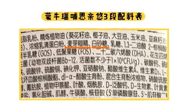 最后在原料方面,瑞哺恩親悠2段之后添加了麥芽糊精,3段還再加入一個白砂糖。