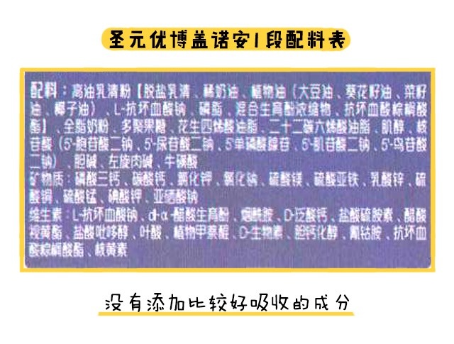 至于優博蓋諾安各個段數都沒有添加比較好吸收的成分。
