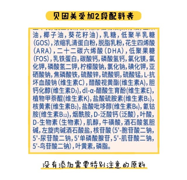 愛加各段數并沒有添加需要大家特別留意的成分,所以原料方面也是愛加的表現更好些。