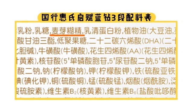 此外,啟賦藍鉆3段還添加了麥芽糊精,麥芽糊精是很好吸收的碳水化合物,