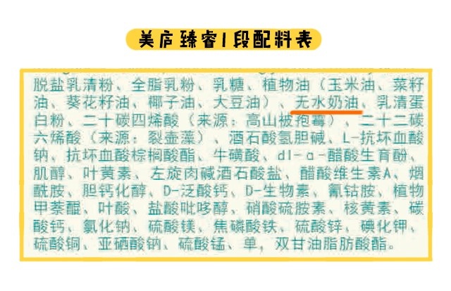 那么回到奶粉本身,從配料表來看,臻睿各個段數都沒有添加比較好吸收的成分。不僅這樣,臻睿添加了無水奶油,無水奶油來源于牛乳,初生寶寶對牛乳脂肪可能比較難消化吸收,大家要注意一下。等寶寶長大一些就不用擔心這個問題。