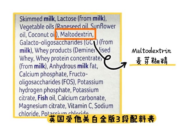 此外,英國版3段還添加了麥芽糊精,麥芽糊精是個很好吸收的碳水化合物。