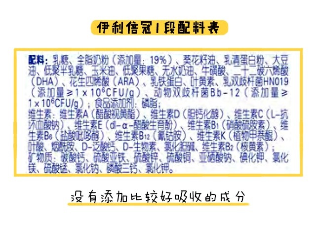 先看看倍冠,從配料表來看,這款奶粉各個段數(shù)都沒有添加比較利于寶寶吸收的成分。