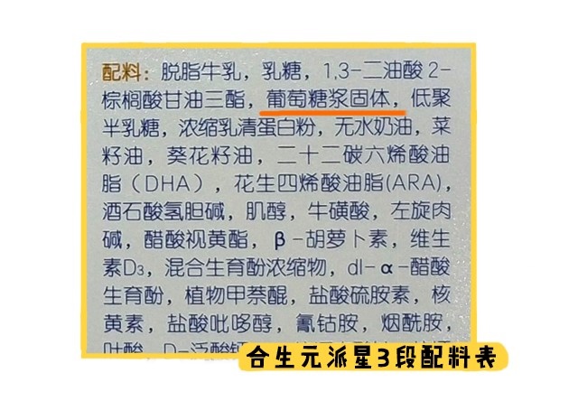 此外,兩款奶粉3段都有添加葡萄糖漿,葡萄糖漿是個很好吸收的碳水化合物,不過它的添加會降低碳水化合物中營養價值更高的乳糖的占比,所以如果你家寶寶沒有腸道不適或者是乳糖不耐受的話,就沒有太大必要為了更好吸收而選擇營養價值較低的葡萄糖漿。