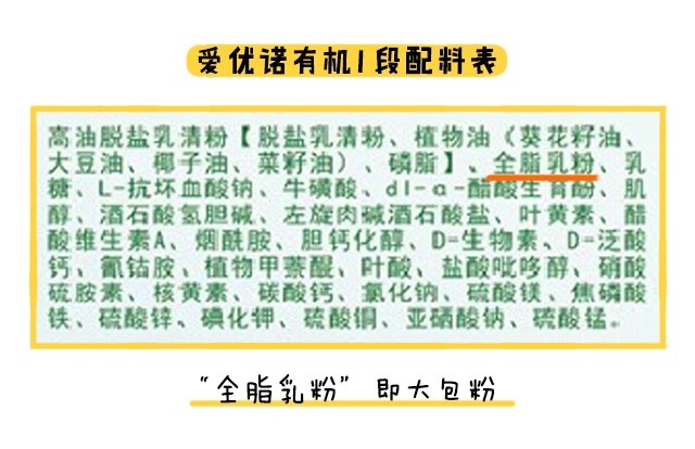 說完奶源方面,接著看看營養配方,有機奶在這塊存在硬傷,因為有機認證要求奶粉中的有機原料至少要達到95%以上,這就意味著能額外添加的人工合成營養素就比較少。