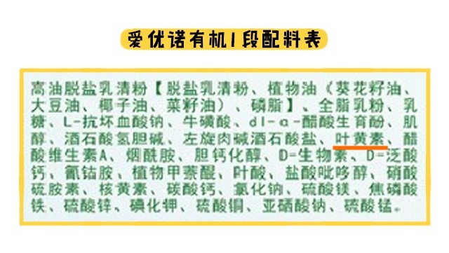除了常規強化配方,在營養方面還有一種分類是特色強化配方,它指的是一些商家宣傳自家奶粉特別添加進去的,區別于其他品牌的營養素。愛優諾有機全部段數只添加了一個葉黃素。