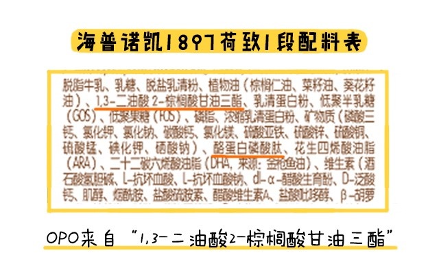 1897荷致各個段數也有添加OPO和酪蛋白磷酸肽,比較利于寶寶在脂肪及蛋白質方面的吸收。