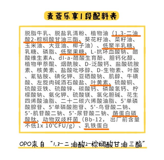 OPO可以優(yōu)化鈣吸收,軟化便便,降低便秘幾率。葉黃素對視力發(fā)育有促進(jìn)意義。益生菌和益生元組合有助平衡腸道菌群結(jié)構(gòu),維護(hù)腸道健康。乳鐵蛋白能幫助增強(qiáng)免疫力,還可以提高鐵的利用率。酪蛋白磷酸肽可以提高鈣、鐵、鋅等二價(jià)礦物營養(yǎng)素的吸收率。