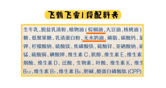 最后在原料方面,大家要注意飛睿1段添加的棕櫚油和無水奶油。