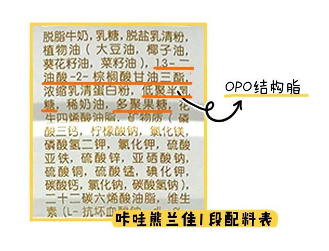 至于特色強化配方,它指的是一些商家宣傳自家奶粉特別添加進去的,區別于其他品牌的營養素。蘭佳各段數是添加了OPO和益生元組合(低聚半乳糖+多聚果糖)。