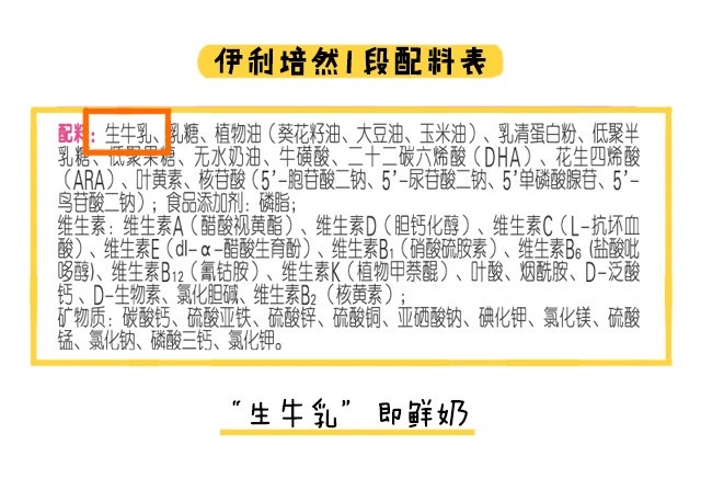 最后原料方面,大家留意一下無水奶油這個(gè)成分,無水奶油的添加可以豐富奶粉的脂肪酸種類,但由于它來源于牛乳,牛乳脂肪對(duì)初生寶寶來說可能比較難消化吸收。
