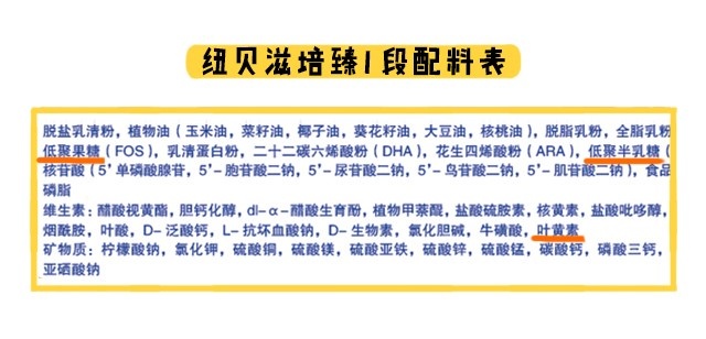在營養配方這塊,除了常規強化配方之外,還有一種分類是特色強化配方,它指的是一些商家宣傳自家奶粉特別添加進去的,區別于其他品牌的營養素。培臻各段數是添加了益生元組合(低聚半乳糖+低聚果糖)和葉黃素。
