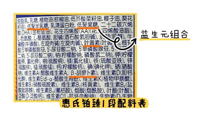 至于特色強化配方,它指的是一些商家宣傳自家奶粉特別添加進去的,區別于其他品牌的營養素。鉑臻是添加了葉黃素、β-胡蘿卜素和益生元組合(低聚半乳糖+低聚果糖)。