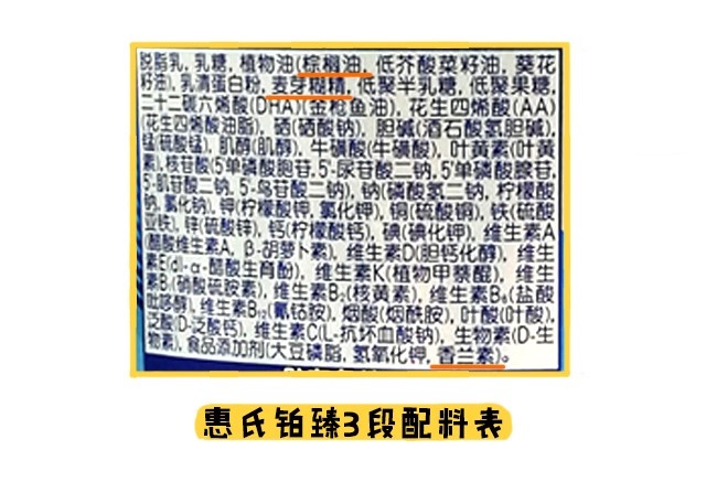 最后在原料方面,鉑臻各個段數都添加了棕櫚油,2段之后還加入了香精,3段更添加有麥芽糊精。