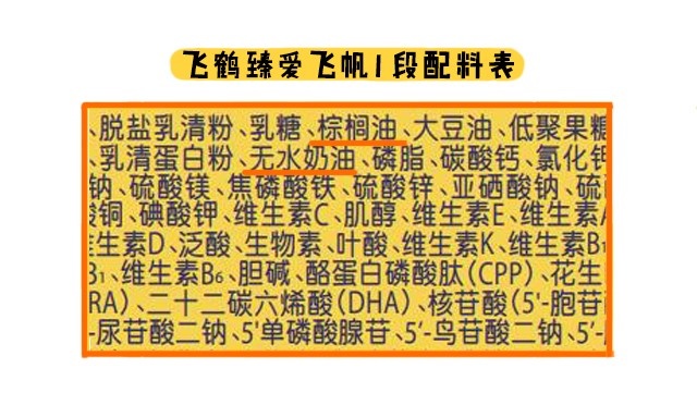 最后在原料方面,大家要注意一下無水奶油的添加,這個成分來源于牛乳,初生寶寶對牛乳脂肪可能比較難吸收。此外臻愛飛帆1段含有棕櫚油,棕櫚油不但會影響寶寶對鈣的吸收,還會使大便變硬,增加便秘幾率。