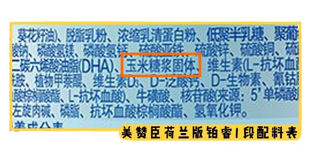 那么回到奶粉這塊,美贊臣鉑睿各段數都添加了玉米糖漿,玉米糖漿是個很好吸收的碳水化合物。
