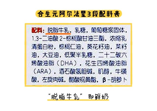 最后看看原料方面,大家要注意一下阿爾法星3段還含有葡萄糖漿,葡萄糖漿除了能提供能量之外,沒什么營養價值,它的添加會降低奶粉中營養價值更高的乳糖的添加量。