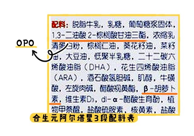 至于特色強化配方,它指的是一些商家宣傳自家奶粉特別添加進去的,區別于其他品牌的營養素。阿爾法星各段數是添加了β-胡蘿卜素、a-乳清蛋白和OPO。
