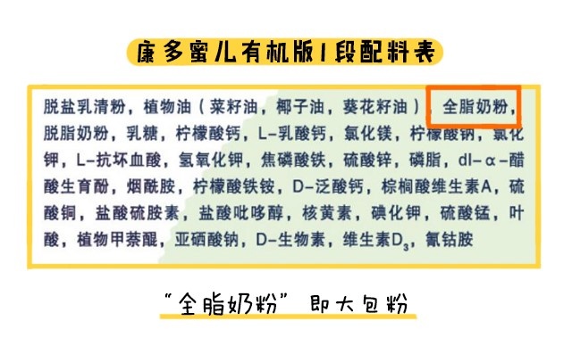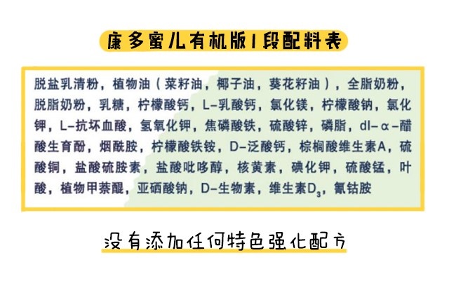 有機奶在奶源方面占優勢,然而在營養配方這塊,有機奶比不上普通奶粉,因為有機認證規定奶粉中的有機原料至少要有95%,這就意味著人工合成的營養素不能過多的添加,所以有機奶粉的營養配方普遍都比普通奶粉少很多,康多蜜兒歐瑞兒有機也不例外,從配料表可以看出,無論是常規強化配方,還是特色強化配方它都沒有任何添加,這個情況比市面上大部分有機奶要差一些。
