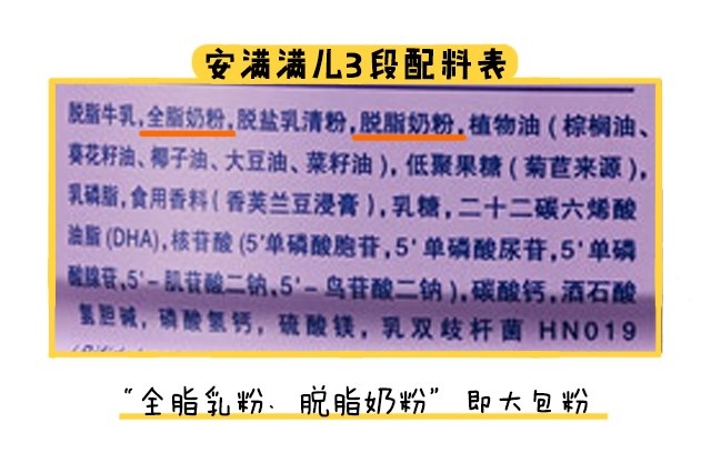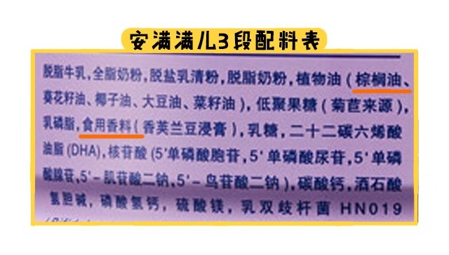 最后在原料方面,安滿滿兒各個段數都添加了棕櫚油,3段還能額外加入了香精。