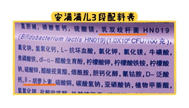 至于特色強化配方,它指的是一些商家宣傳自家奶粉特別添加進去的,區別于其他品牌的營養素。安滿滿兒各段數是添加了β-胡蘿卜素和益生菌(乳雙歧桿菌)。