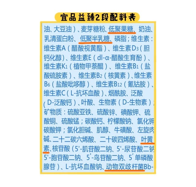 至于特色強化配方,它指的是一些商家宣傳自家奶粉特別添加進去的,區別于其他品牌的營養素。益臻各段數是添加了葉黃素、益生菌(動物雙歧桿菌)和益生元組合(低聚半乳糖+低聚果糖)。