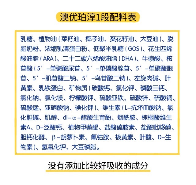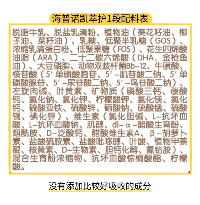 從配料表來看,珀淳和海普諾凱萃護全部段數都沒有添加比較好吸收的成分。