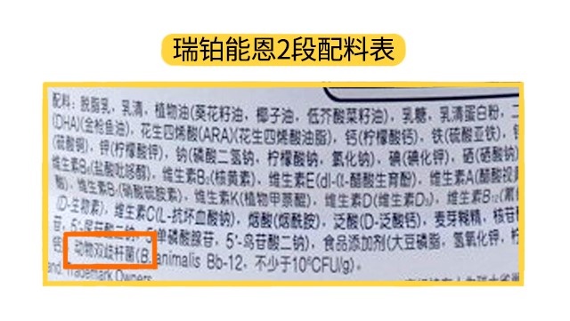 從配料表來看,能恩和瑞鉑能恩全部段數都添加了益生菌(動物雙歧桿菌),益生菌是腸道中的有益菌,它可以抑制病菌害菌的生長,幫助平衡腸道菌群結構,對于寶寶因腸道菌群失衡而產生的便秘有比較良好的預防和改善作用。