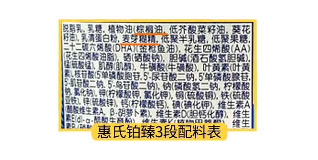 鉑臻各個段數也有添加棕櫚油,此外,鉑臻3段含有麥芽糊精,麥芽糊精是個很好吸收的碳水化合物。
