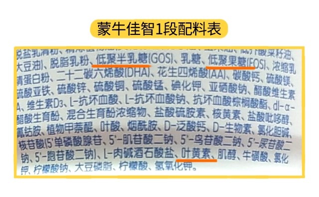 而佳智各段數只添加了葉黃素和益生元組合(低聚半乳糖+低聚果糖)。